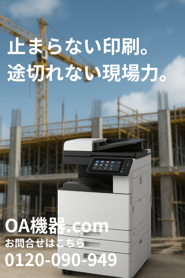 建設現場の事務所では、開設直後から図面の出力や書類作成が一気に増えます。