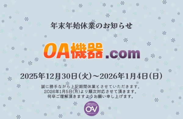 OA機器.comでは、年末年始休暇の期間を以下の通りとさせていただきます。